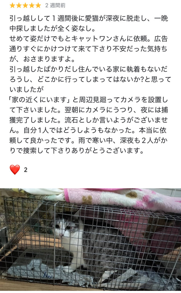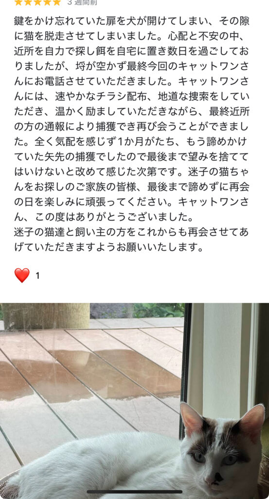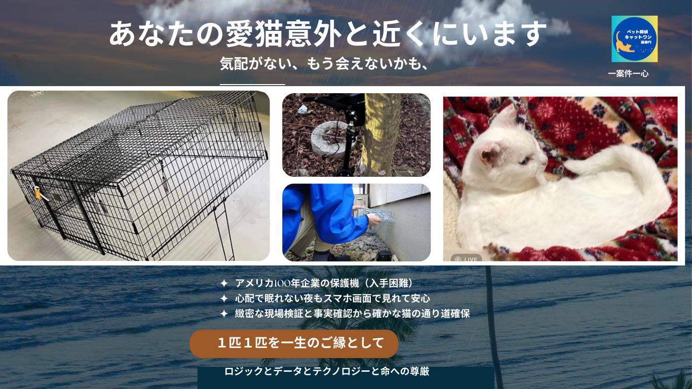 愛猫がいなくなって不安な飼い主様をお待たせしない寄り添うキャットワン。