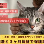 今回、私たちは3ヶ月サポートをご利用になり無事に愛猫を保護した、京都府伏見区H様の事例を元に、その全貌をご紹介します。H様は猫が脱走され、すぐさまお電話をかけたところ、キャットワンは約1時間後に現場へ到着。プロによる入念な捜索を開始しました。