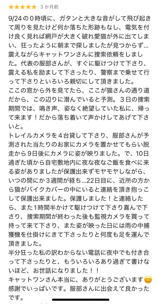 契約期間後の徹底サポート:実績があるのはキャットワンだけ(Google口コミ多数)