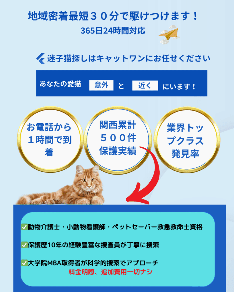 京都で迷子猫・脱走猫の捜索と保護は信頼と実績のキャットワンが解決。