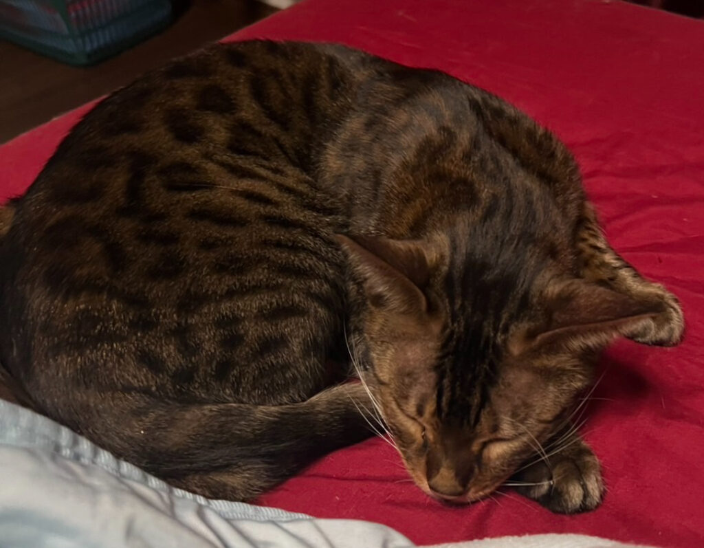 猫さんは行ったり来たりを3時間ほど繰り返し、飼い主様が寝静まった頃、玄関から2階にあがり飼い主様の寝ている足元で「にゃーただいま」と泣いてくれました。