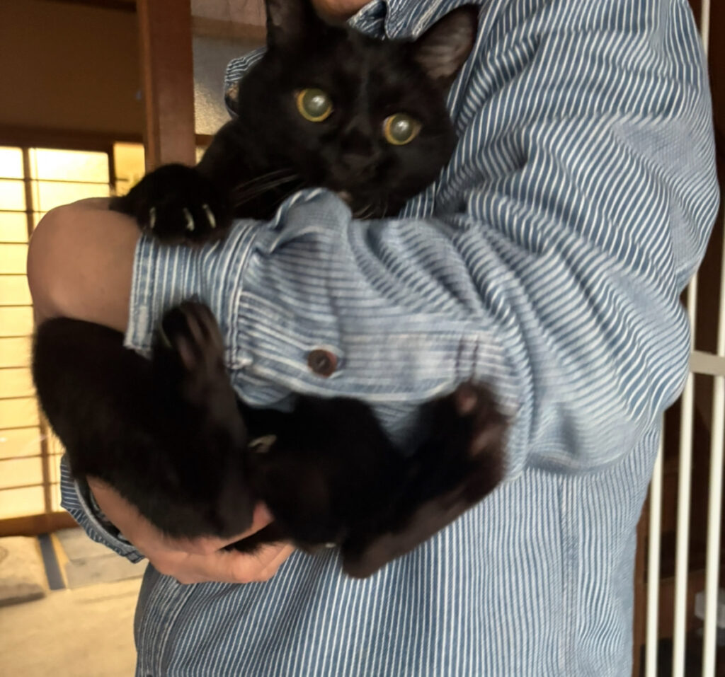 ご自身でも黒猫を飼われていて猫さんとの絆はとても大きいとおっしゃっておられました。また京都の太秦撮影所に通っていた頃コンビニで捨て猫を2匹拾って育てたご経験もあり猫さんはとても好きです。とおっしゃっておりました。私の愛猫も逃げずに野村様を見つめていました。